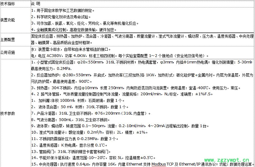 本装置可用于常压、高压、高温连续反应试验,适用于科研院所进行催化剂性能评价及筛选等研究工作。
