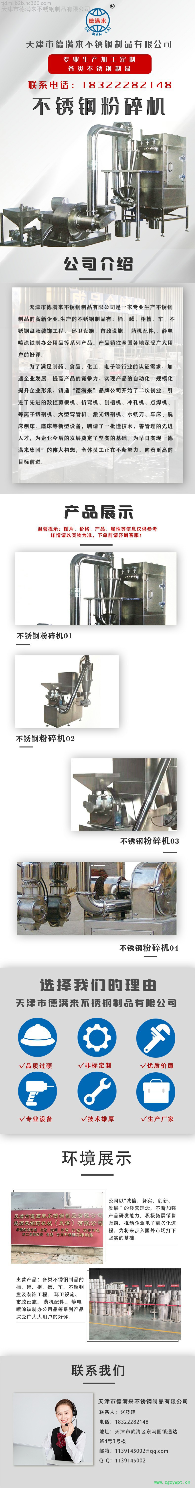 不锈钢粉碎机适用于医药、农业、食品、化工、合金、冶金、地质、科研等单位多品种小批量中草药、贵重药材、矿石、化学原料粉碎之用。本机采用不锈钢材料制造,具有较强的耐磨耐腐蚀特点,适合加工有腐蚀性物料。本机利用活动齿盘和固定盘间的高速相对运动,使被粉碎物经齿冲击、磨擦及物料彼此间冲击等综合作用获得粉碎。本机结构简单、坚固、运转平稳、粉碎效果良好,被粉碎物可直接由主机磨腔中排出,粒度大小能过更换不同孔径的网筛获得,机壳内壁全部经加工达到表面光滑,改变了内壁粗糙、积粉的现象,使药品、食品、化工等生产更符合标准,达到GMP的要求。