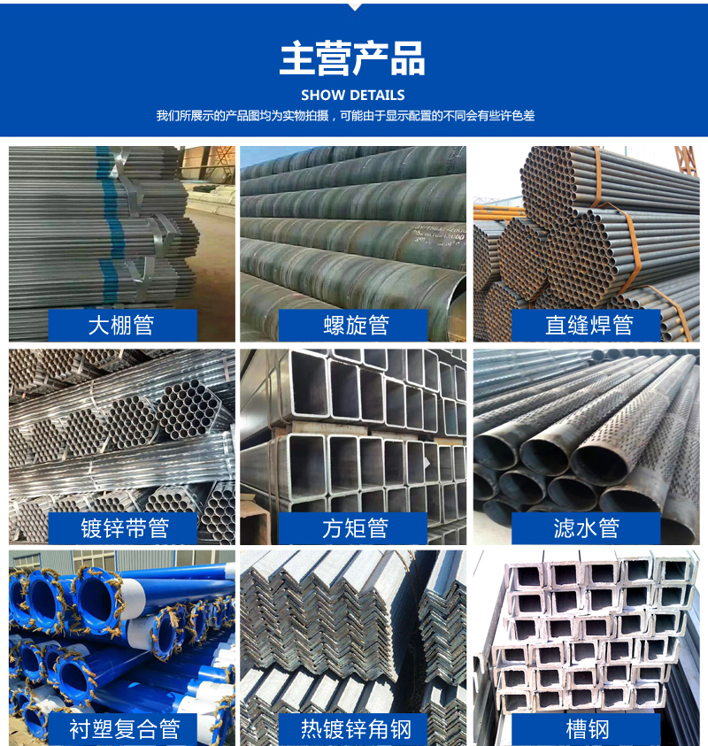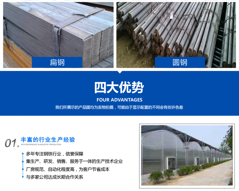 大棚管又名镀锌大棚管,镀锌管大棚分热镀锌和电镀锌两种,热镀锌镀锌层厚,具有镀层均匀,附着力强,使用寿命长等优点。电镀锌成本低,表面不是很光滑,其本身的耐腐蚀性比热镀锌管相差很多。天津大棚钢管厂是专业从事大棚骨架、连栋大棚、大棚配件、温室资材生产、温室设计、骨架加工、销售一体的企业。公司位于天津大邱庄 厂区占地面积20亩,标准厂房6000平方米,年产量达到200万平方米温室骨架,年销售钢材量3万多吨,公司一直与多家上市公司合作,为光伏农业提供约千亩骨架及配件。长期战略合作商如华盛绿能农业科技有限公司。现代化的管理模式、优越的企业文化让我们已经成为行业中的佼佼者。公司引进的ERP系统,运作已经日趋成熟,大大提高了工作效率。研发团队自主研发的配件生产磨具已拥有多项产品生产权。目前公司拥有卡槽成型机6台,日产量达到10万米;三台160吨6米折边机,可以应客户不同要求进行定制天沟等大棚构建;公司投入500万改造各种数控机床,所有温室配件均采用全自动化设备,提高了产品产能以及质量。公司坚持以先进的技术为指导,不断创新,生产**、实用的专业温室配件。温室主体钢架结构采用热镀锌工艺,防锈防潮,经久耐用。