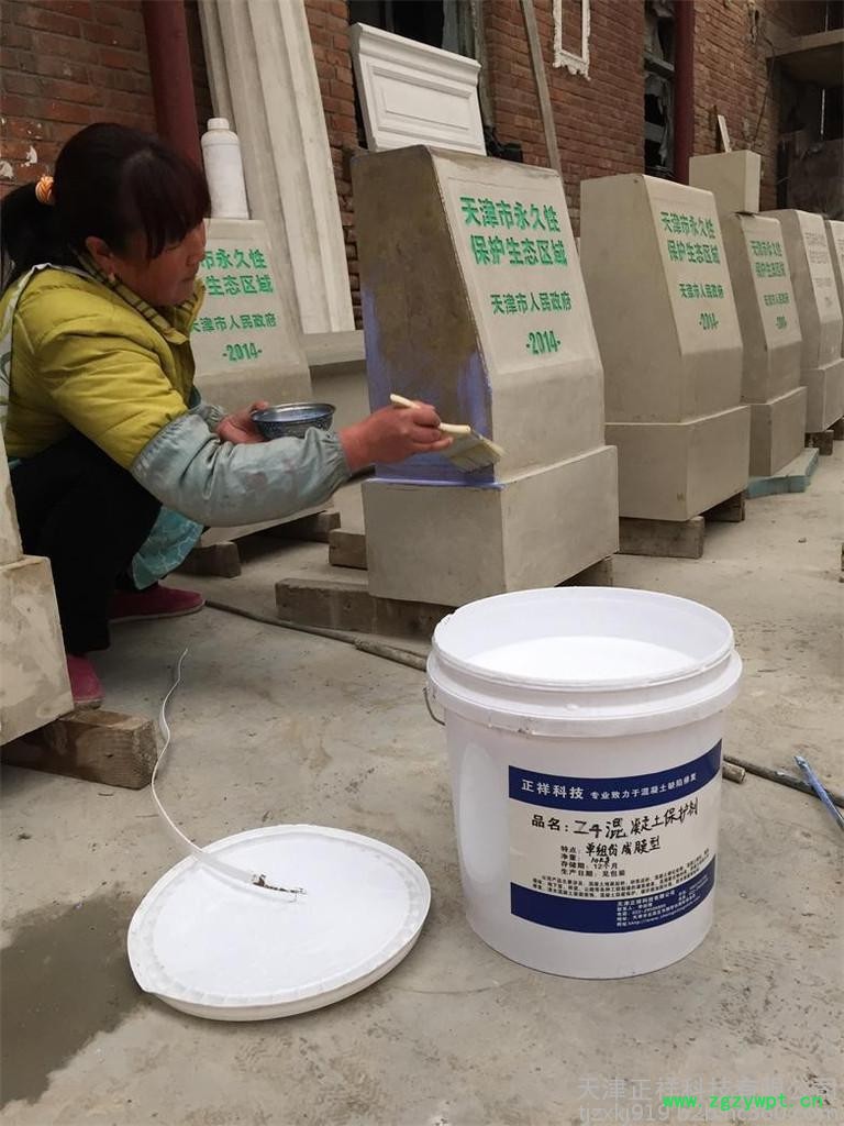 正祥Z4混凝土保护剂是一种反应型有机硅化合物,可在混凝土及石材表面形成通透保护膜,与其它成膜类保护涂料不同,混凝土保护剂并未封住矿物质表面的孔隙,而是浸入孔壁并形成一层无色透明的憎水薄膜。此类保护剂,已在欧美国家使用50年以上,效果显著。处理后基材不会再被水浸湿,防止因毛细管吸水作用导致的氯盐侵蚀、冻融、吸水等破坏,从而提高混凝土的耐久性及砖板、石材的耐用性。
