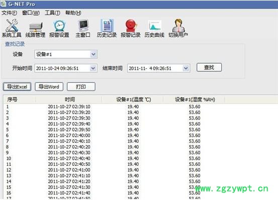 2、历史数据界面,可以导出不同格式,如:EXCEL,WORD格式