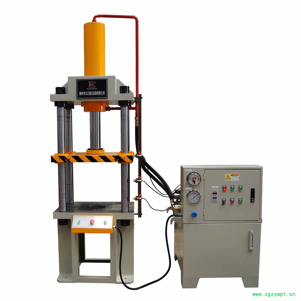 柱状成型液压机为三梁四柱式结构,经济实用,压制精度高。具有独立的液压泵站和电气控制系统。液压控制采用插装阀集成系统,结构紧凑、动作可靠、密封性能好、使用寿命长、安装维修方便。油压采用电接点压力表显示(可选装数显压力控制器),并可根据需要在允许范围内任意设定油压上限。电气系统采用按钮集中控制,并设有点动、半自动两种操作模式。工作压力和行程可根据需要在规定范围内任意调节,并能完成定压和定程两种成型方式。