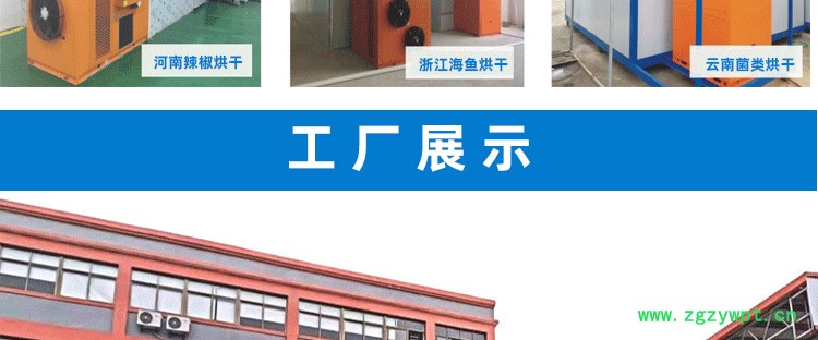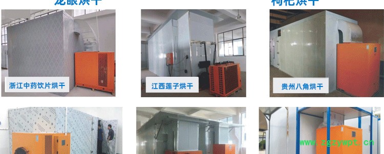 工厂制造姜黄烘干机 家用八角烘干机 热泵烘干机的影响因素: 1)中材的这种类和性质----中材包括根、茎、叶、果实、种子、皮类等。中材的外形、大小、厚薄、轻重、质地、成分等等因素都影响烘干的过程。 2) 干燥温度----根据物料的不同,在保证烘干质量的情况下,尽量选择高的烘干温度,以加快烘干速度。 3) 湿度----物料不同湿度含量大小。 4) 热风介质的风速----烘干室内的热风介质速度和干燥速度、物料形式、物料的特性有关系。 烘干后的陈皮室温陈列2:内螺纹亲水翅片换热器(冷凝器+蒸发器)换热效果更高,高温高压的制冷剂在冷凝器中释放给空气介质,高效节能。 空气能烘干机设备是一种新型环保节能的烘干机设备,其工作原理是根据逆卡诺循环原理,采用少量的电能,利用压缩机做工,将工质经过膨胀阀后在蒸发器内蒸发为气态,并大量吸收空气中的热能,气态的工质被压缩机压缩成为高温、高压的气体,然后进入冷凝器放热(烘干箱),把烘干箱能需要干燥的介质加热,如此不断循环加热,可以把干燥介质加热至常温~85℃。相对于电热烘干机而言,节约了35%-40%的电能,工作中不会产生任何污染。 空气能烘干vs其它烘干模式环保无污染,适应新经济生产模式,有利于可持续发展智能化生产,减少人工管理费用,安全性能高不受环境,季节等因素影响,提高生产效率,便携卫生。