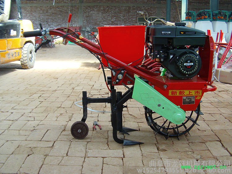 必须保障种子的质量,将种子倒入种子箱,必须确保种子具有较高的有效性,保障种子箱内的种子可以覆盖住种子箱中的排种盒入口,保障有足够的种子从种子箱内流出。通常情况下,必须保障种子箱内的种子达到总容积的 1/5 以上。如果需要将玉米播种机进行移动,应在播种机处于前进的状态时进行操作。如果需要进行转弯或倒退,这时应当将播种机提起,如果直接进行转弯或倒退,很容易损坏玉米播种机机体等零件。豇豆播种机 龙钰机械中药材播种机 小型单行花生播种机更换楼心,可以直播各种农作物。 施肥播种,耙地时,设有压土轮,不用抬着,省力方便。