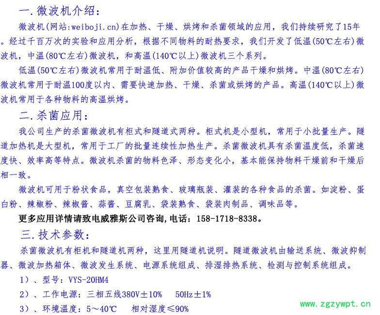 总用电功率:≤30KVA 微波功率:20KW