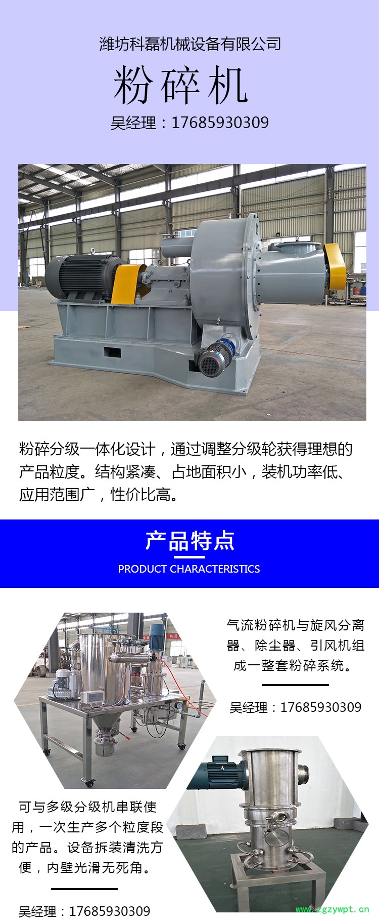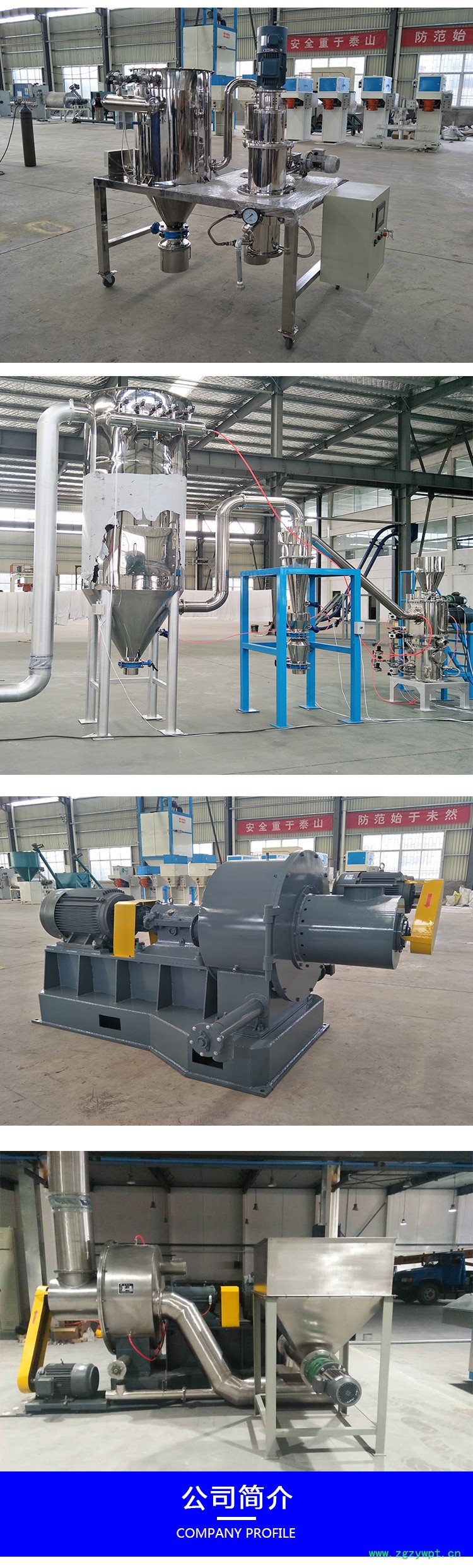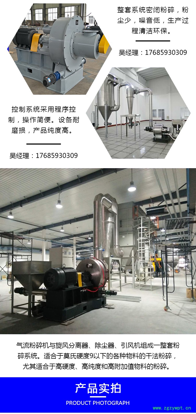 中药超微粉碎机:是利用空气分离、重压研磨、剪切的形式来实现干性物料超微粉碎的设备。它由柱形粉碎室、研磨轮、研磨轨、风机、物料收集系统等组成。物料通过投料口进入柱形粉碎室,被沿着研磨轨做圆周运动的研磨轮碾压、剪切而实现粉碎。被粉碎的物料通过风机引起的负压气流带出粉碎室,进入物料收集系统,经过滤袋过滤,空气被排出,物料、粉尘被收集,完成粉碎。