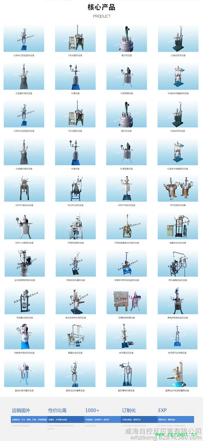 威海自控反应釜有限公司是国内较早生产磁力搅拌静密封高压釜及磁力搅拌器的生产企业,以我国磁力反应釜科技创新为己任,是国内研究开发制造各种磁力搅拌反应釜及磁力搅拌器的生产厂家,公司下辖一个生产厂和磁力偶合器、搅拌器研发中心,技术力量雄厚、加工检测设备齐全,具有较丰富经验的开发设计制造队伍。产品销往全国,并远销欧洲、日本、韩国、巴西、伊朗等国,深受广大用户的信赖和赞誉。近几年来经过不懈的努力和反复的实验成功开发纳米材料的制备反应装置和超临界CO2萃取反应装置,在国内高等院校及科研院所中得到了广泛的应用。