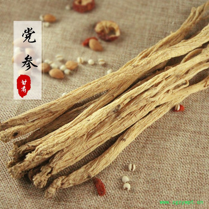 【产品功效】 党参味甘,性平。有补中益气、止渴、健脾益肺,养血生津。用于脾肺气虚,食少倦怠,咳嗽虚喘,气血不足,面色萎黄,心悸气短,津伤口渴,内热消渴、懒言短气、四肢无力、食欲不佳、气虚、气津两虚、气血双亏以及血虚萎黄等症。