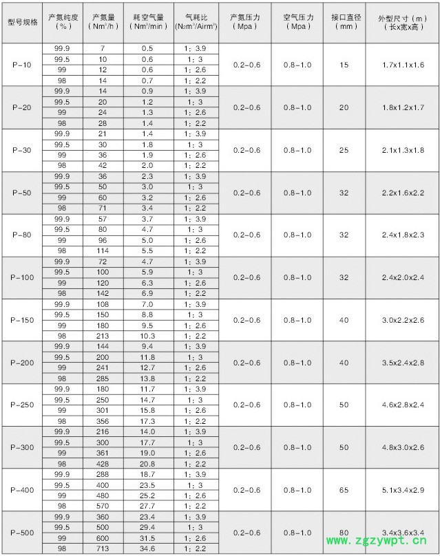 主要特点: 1、稳定性好,氧含量在任何时候都能在5PPm以下; 2、纯度高,氮气纯度在99.9995%时能保持长期稳定。 3、可靠性好,按照ISO9002国际标准进行制造。 | | | | | 型号规格 | SL-QC5 | SL-QC10 | SL-QC30 | SL-QC50 | SL-QC100 | SL-QC200 | SL-QC300 | SL-QC400 | SL-QC500 | 处理气量 (Nm3/h) | 5 | 10 | 30 | 50 | 100 | 200 | 300 | 400 | 500 | 原料气 普氮 | 含氧量 (%) | ≤0.1 | ≤0.1 | ≤0.1 | ≤0.1 | ≤0.1 | ≤0.1 | ≤0.1 | ≤0.1 | ≤0.1 | 露点 (℃) | ≤-20 | ≤-20 | ≤-20 | ≤-20 | ≤-20 | ≤-20 | ≤-20 | ≤-20 | ≤-20 | 净化后 高纯氮 | 含氧量 (PPm) | ≤1 | ≤1 | ≤1 | ≤1 | ≤1 | ≤1 | ≤1 | ≤1 | >≤1 | >露点 (℃) | ≤-60~-70 | ≤-60~-70 | ≤-60~-70 | ≤-60~-70 | ≤-60~ -70 | ≤-60~ -70 | ≤-60~ -70 | ≤-60~ -70 | ≤-60~ -70 | | 操作压力(MPa) | ≤0.6 | ≤0.6 | ≤0.6 | ≤0.6 | ≤0.6 | ≤0.6 | ≤0.6 | ≤0.6 | ≤0.6 | 反应器温度 (℃) | 300-350 | 300-350 | 300-350 | 300-350 | 300-350 | 300-380 | 300-380 | 300-380 | 300-380 | 吸附塔温度 (℃) | 350 | 350 | 350 | 350 | 350 | 350 | 350 | 350 | 350 | | 电耗(KW) | 4.8 | 6.8 | 10.5 | 15.0 | 30.0 | 30.0 | 30.0 | 30.0 | 30.0 | 脱氧剂容量 (Kg) | 10 | 30 | 80 | 100 | 200 | 260 | 380 | 480 | 520 | | 外形尺寸(m) | 0.8×0.5 ×1.5 | 1.2×0.8 ×2.4 | 1.5×0.8 ×3.0 | 2.5×1.5 ×3.0 | 3.0×2.0 ×4.0 | 3.0×2.0 ×4.0 | 3.0×2.0 ×4.0 | 3.0×2.0 ×4.0 | 3.0×2.0 ×4.0 | 冷却水 (m) | 0.4 | 1.4 | 1.7 | 2 | 2.5 | 3.5 | 4.5 | 5 | 6 |