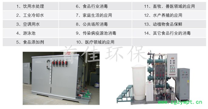 并在全国同行业中率先推向市场,服务于社会,且深受用户的欢迎。该设备采用了新型的HGD-2多组份金属阳极和阴极,寿命高达1万小时以上,电流效率达 80%以上,电耗、盐耗指标均达到国内外同类产品的先进水平。在设备操作上可分手动和自动两种方式,自动设备操作上完全实现了自动补水、自动化盐、自动配制电解盐水、自动清除电极表面上的硬垢。为了保护设备和提高设备的安全性,专门设置了储液箱高位停机装置和超温报警并自动停机装置,并可与上位机连接,彻底消除了一切安全上存在的隐患。