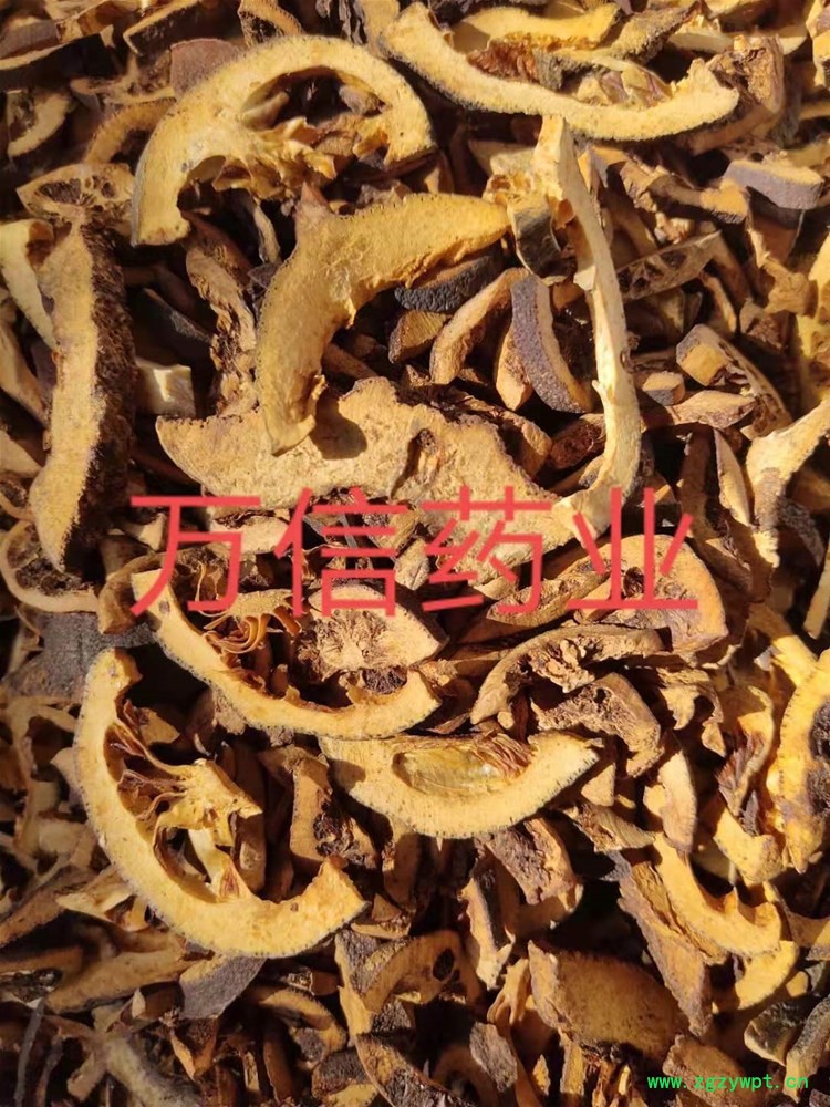 【规 格 描 述】 麸炒杂枳壳片,为不规则弧状条形薄片,外表面颜色褐绿色,
