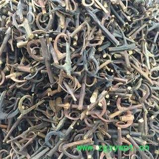 规格:长度为2-3cm,表面红棕色至紫棕色或棕褐色,上有细纵纹,无毛。茎上具略突起的环节,对生两个向下弯曲的钩或仅一侧有钩,钩长1-2cm,形如船铺,先端渐尖,基部稍圆。钩基部的枝上可见叶柄脱落后凹点及环状的托叶痕。体轻,质硬。横舅面外层棕红色,髓部淡棕色或淡黄色。