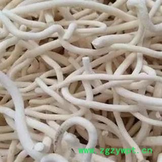 性状:呈圆柱形,长20-40cm,表面白色或淡黄色,有浅纵沟纹,体轻,质松软,稍有弹性,易折断,断面平坦,显银白色光泽。
