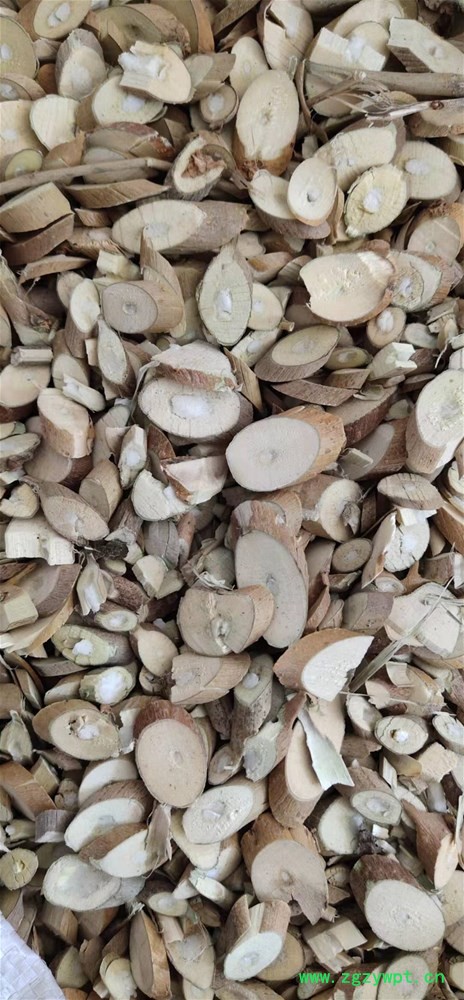 性状颜色:本品呈类圆形或椭圆形的厚片。外表皮灰黄色或黄褐色,有点状皮孔。切面皮部较薄,木部黄白色,射线放射状,髓部白色或黄白色。气微,味淡。