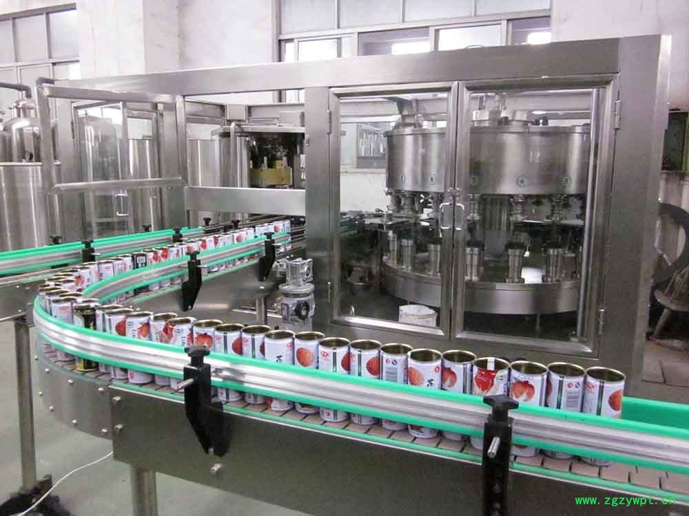 4.灌装机:本机引进德国O+H公司技术,采用等压灌装技术原理的自动灌装阀,由封盖机传动以保持同步运转,可以调整灌缸的高度,以适应不同罐子的高度,性能稳定。操作方便。主要用于含CO2气体的饮料和啤酒的二片易拉罐灌装。
