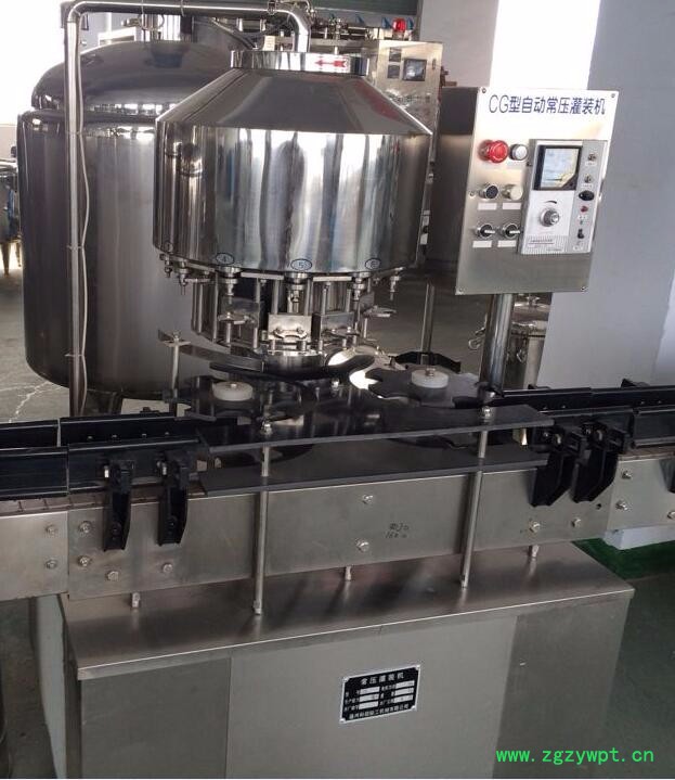 灌装方式采用了新型的微压灌装,使灌装速度更快更稳定,所以与同规格的机器相比本机的产量更高,效益更大。等压灌装机采用了先进的日本三菱可编程控制器(PLC)控制机器的自动运行,进瓶链道采用变频器调整,与主机变频器相互配合使进瓶运行更稳定可靠。 光电检测各部件的运行状况,所以自动化程度高,操作简便。在此基础上,本机变更灌装部分,可以形成低真空灌装方式。低真空灌装方式(Z型机),适用于玻璃瓶,灌装酒类、酱油等物料,其封口方式可以选配铝金属防盗盖和塑料盖。是饮料生产厂家理想的首先设备。