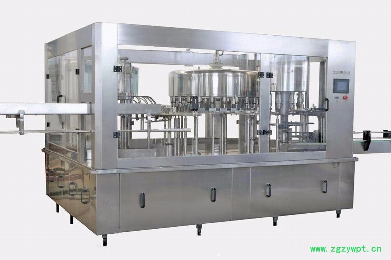 温州科信公司PET瓶三合一机集冲洗、灌装、封盖于一体,是以国外先进技术为基础,根据茶、果汁、等饮品的灌装工艺要求研制而成的。灌装温度一般在82-85度左右的液体。