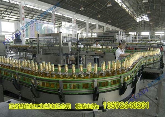 (5)灌压设备作用是向容器瓶子里灌浆、灌碳酸水,然后压盖封口。采用等压溜装时,可直接向瓶内灌人来自一次性混合机的饮料并在同机上压盖封口,省去了灌浆这一工序和设备,封口后的瓶子经贴标(有手工、有机械)后装箱。