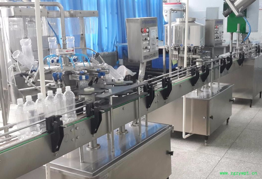 (4)瓶处理设备:其作用是将塑料瓶(液体灌装容器)清洗、消毒、灭菌达到**卫生标准。该套设备包括:浸泡机、冲瓶机、立瓶机等。
