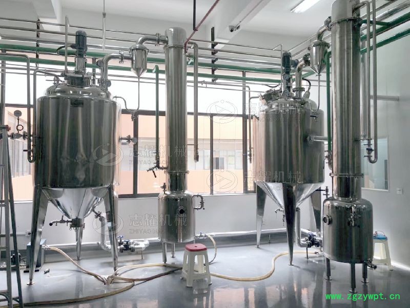 1.设备主要由浓缩罐、气液分离器、冷凝器、受液罐等部分组成。浓缩罐为夹套结构,冷凝器为列管式。