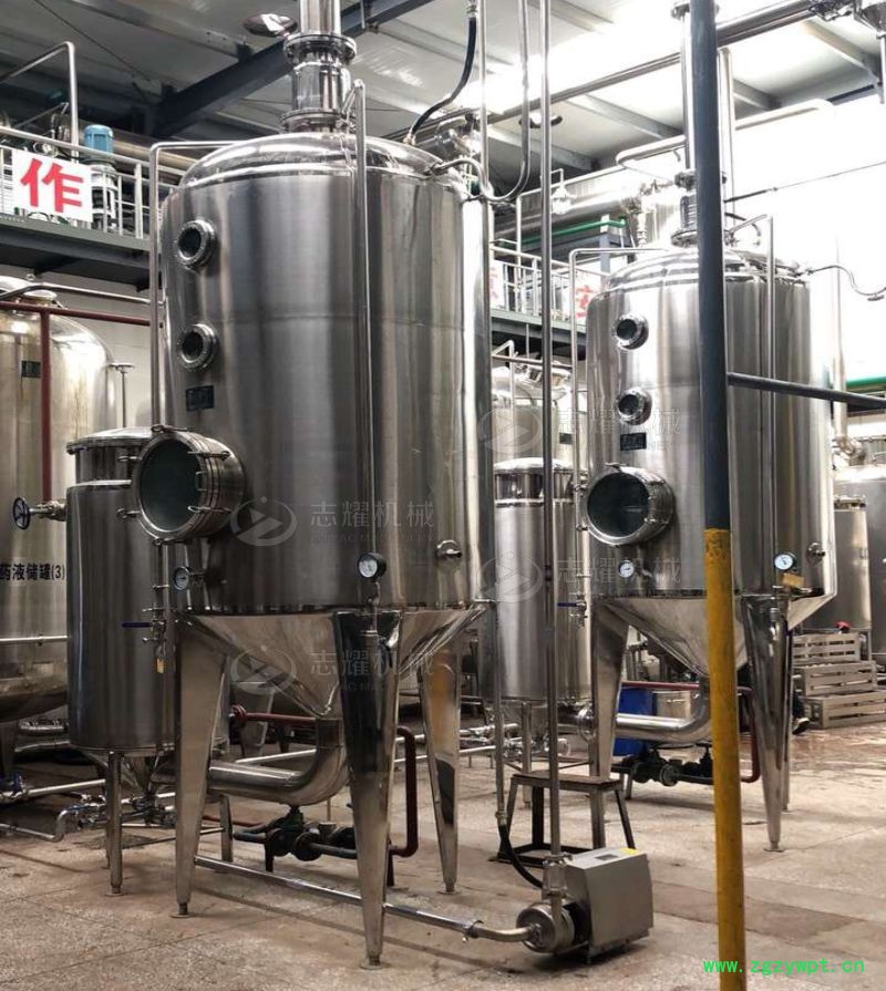 2、浓缩液料: 单效浓缩器采用外加热自然循环与真空负压蒸发相结合的方式,蒸发速度快,浓缩比可达1.3,液料在全密封状态无泡沫浓缩,用单效浓缩器浓缩出来的药液,具有无污染,药味浓的特点,而且清洗方便(打开加热器的上下盖即可进行清洗)。单效浓缩器操作简单,占地面积小。加热器、蒸发器采用不锈钢保温结构,保温层外用不锈钢薄板制作外壳,表面做镜面或亚光处理。