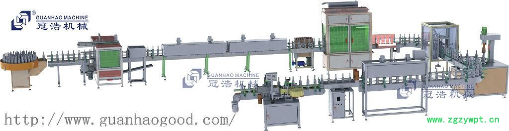 这条信息由(勤发发软件)发布,请在百度搜索(勤发发)。全自动活塞式液体灌装机,采用活塞式灌装形式,进口PLC配合触摸屏人机界面,适合于灌制从水剂到膏霜的各种黏度产品,适用于日化、医药、食品、农药等各个行业。技术参数 6头液体灌装机灌装头数量:6 灌装容量:任意灌装形式:重力直流式灌装(输送带用赛钢链片带)理论灌装速度:60-80瓶/分钟(45毫升)灌装精度:±2毫升(45毫升)材料:灌装机架采用不锈钢,接触物料部分采用不锈钢输送速度:5-15米/分钟输送带宽度:82毫米输送带:3米赛钢链片式输送带离地高度:750毫米±20毫米整机功率:1000W/220V交流单相程序控制:进口PLC配合触摸屏人机界面阀门材料:316不锈钢驱动电机:370W机械调速料槽容量:100L 工作台宽度:20厘米气源:0.5-0.8MPa YS2004-2自动双头压塞机(技术参数)适用瓶身直径:30~80(MM)适用瓶盖直径:15~80(MM)(不同规格需换压头)生产能力:60-80只/分钟额定电压:220V/50Hz 整机功率:200W 气源:0.5-0.8MPa 驱动电机:140W交流调速输送速度:5-15米/分钟输送带宽度:82毫米输送带:1米赛钢链片式工作台:0.5米×1米(工作台带40毫米高边缘) XG2004自动旋盖机(技术参数)(配振盘式送盖机) 适用瓶身直径:35~110(MM)适用瓶盖直径:15~50(MM)生产能力:﹥60只/分钟额定电压:220V/50Hz 整机功率:800W 驱动电机:370W机械调速输送带宽度:82毫米输送带:3.45米赛钢链片式、输送带离地高度:750毫米±20毫米工作台:0.5米×1米(工作台带40毫米高边缘) 送瓶机(技术参数) 适用瓶身直径:30~80(MM )生产能力:60-80只/分钟额定电压:220V/50Hz 整机功率:150W 驱动电机:140W交流调速 装箱输送带(技术参数) 输送带材料:赛钢链片式总长度:2米输送带长度:1.7米输送宽度:254毫米输送带离地高度:750毫米±20毫米工作台宽度:20厘米(工作台带40毫米高边缘)额定电压:220V/50Hz 整机功率:150W 驱动电机:140W交流调速输送速度:5-15米/分钟(以上为标准机型技术参数,其他特殊要求和功能,可量身订做!)这条信息由(勤发发软件)发布,请在百度搜索(勤发发)。