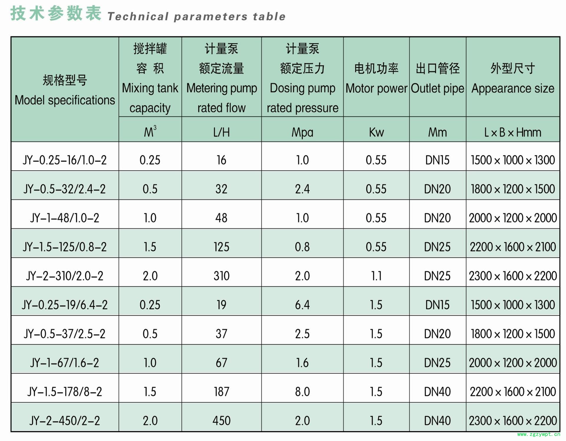 1.用户选用加药装置时,首先根据系统需要,投加溶液量来确定选用规格(包括计量泵参数、混药箱容积、储药箱容积及现场条件),再根据投加情况确定投加方式(一般为一开一备)。