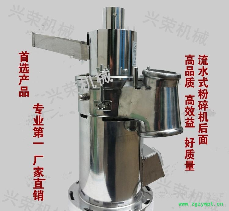 超细粉碎机图片 超细粉碎机简介 超细粉碎机技术参数 流水式粉碎机 ,流水式中药粉碎机 ,连续式粉碎机 ,家用粉碎机 全不锈钢流水式粉碎机适用于小型中药厂、中药店、中医院,同时适用化工、矿山和科研单位等,该机工作效率高,操作简单。产品细度克达200目,对于粉碎易粘结,通常粉碎机难于粉碎的贵重中药**更为有效。 中药粉碎机主要技术参数: 生产能力:20-40kg 细 度: 80-200目 电 压: 220v 主轴转速: 2840r/min 电机功率: 1500w 重 量: 25kg 外形尺寸: 500×170×550mm 中药粉碎机详细介绍: 一、注意事项: 1、检查粉碎腔内是否有异物(开机前必须为空),接通电源。 2、拧紧上盖和粉碎腔的蝶形螺帽。 3、启动电机,空机转动1-2分钟,然后从进料盘中渐渐喂入所打物料,喂料不宜过快过多。 4、如遇物料卡住,电机不转,请立即关闭,以免电机烧毁,待清除所卡物料后,可继续使用。 5、本机在使用过程中严禁打开上盖和用手伸入粉碎腔内。 6、本机系干式粉碎机,不宜粉碎潮湿物和油腻物。 7、请用户根据所需更换不同筛网。 8、本机采用过热保护器,如电机负载过大,会自动停机,如继续操作,请重新按下保护器。 9、在本机工作过程中,电流不得大于10安培。 二、常见故障产生原因及排除方法: 故障 产生原因 排除方法(必须切断电源才能进行以下操作) 通电后电机不转动 1、电源接触不良或插头松动。2、电源开关接触不良3、微动开关接触不良4、热保护器失灵 1、修复电源或调换接头2、修理或更换开关3、调整微动开关4、更换热保护器 通电后电机转动过慢或不转并产生振动 1、机械部分卡住(粉碎机槽内有异物)2、离心器没有打开3、电源电压过低 1、清除粉碎槽内异物,开机先空转半分钟后再慢慢喂料2、调正电源电压 电机机壳表面过热 1、负荷过大2、电机潮湿3、 电源电压过低 1、减少工作压力2、干燥电机3、调正电源电压 换向器表面产生环火或较大火花换向器表面不光滑 清除换向器表面杂物 非人为因素,因产品质量机器零配件需要更换的,公司除免费更换外,并承担配件包装、运输费用。(安全信誉保障:只需预付少量定金,即可物流快运发货,货到再付清余款) **,欢迎来电 15800043051 在线客服QQ: 1985648089 兴荣公司网址: www.xingrong168.com 直接购买的顾客广州市内可乘862B 、701、832、560、502、504、126、179、836、B6、83、219公车到同和站或者东坑站下车即可!或者乘地铁到同和C/D出入口下。