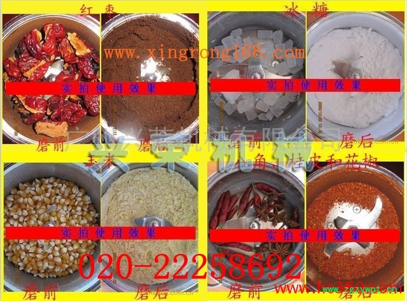 广州兴荣机械生产的小型磨粉机适用于医药、农业、食品、化工、合金、冶金、地质、科研等单位多品种小批量中药、贵重药材、矿石、化学原料如:阿胶、乳香、黄芪、三七、海马、菟丝子、灵芝、甘草、珍珠,大米,芝麻,花生。玉米,黑豆,黄豆等不同性质物料均能很好粉碎。本机采用高速单相电机,结构精密、体积小、重量轻、功效高、无粉尘、清洁卫生、操作简单、造型美观、既省电又安全等特点,使药品、食品、化工等生产更符合**标准,达到GMP的要求;