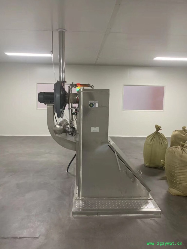 以负压输送方式将物料从地上上料仓提长到高位过渡料仓。设备包含真空上料机、上料管道、与地上上料仓的连接组件等。在用于兽药粉剂、兽药散剂、兽用预混剂有特别优点。