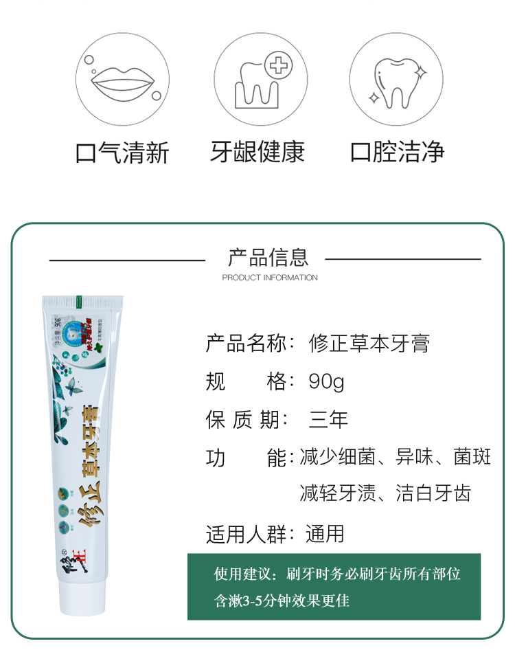 修正集团荣誉出品,针对国人口腔问题研发。汲取忍冬,黄芩,连翘三种生物科技,超微萃取,更细腻柔和。缓解各种口腔问题,减少口腔病菌,减轻口腔异味,减少牙斑菌,减轻牙渍,洁白牙齿。为您的牙齿健康保驾护航。