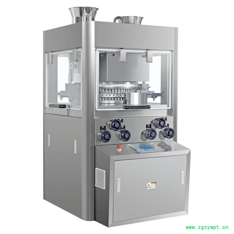 2. 转台转速高,双面压片,高产量达每小时30万片,适应药厂大批量生产的要求。