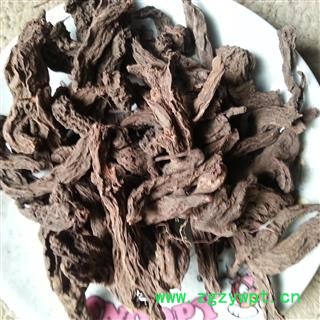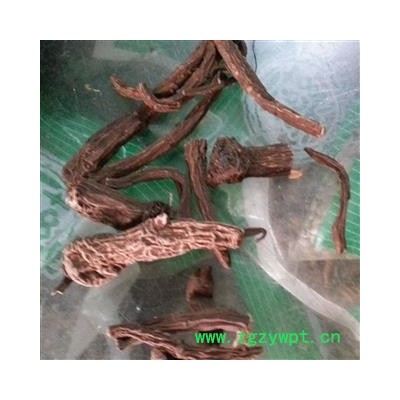 药材性状:表面棕红色或灰棕色,有扭曲的纵皱纹;顶端可见茎痕。质坚实而易折断,断面皮部红褐色,木部棕黄色。气微,味微辛。