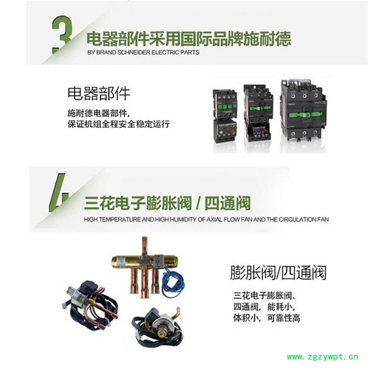 主要配件:美国品牌谷轮压缩机、日本鹭宫电子膨胀阀,第三代电控系统。