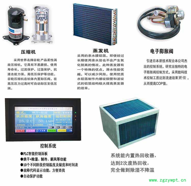 热泵干燥技术是用蒸发器给空气降温干燥,并回收冷凝器释放的冷凝热的一种干燥技术,在同等条件下干燥,热泵干燥可节能20% ~ 50%。目前已应用于木材、粮食的干燥、食品加工及纺织行业。用热泵干燥加工脱水蒜片、脱水姜片,产品复水率高。应用于中药材的干燥,能够很好地保障干燥产品的品质,中草药的颜色、外观形态和有效成分等在热泵干燥中都能得到妥善的保护。利用热泵干燥鹿茸、淮山、北芪、三七、玛咖等,都能较好地保持原有的色、味、有效成分及活性物质。同时,热泵干燥技术具有高效节能、成本低、不污染环境、能对干燥介质的温度、湿度、气流速度进行准确独立控制等优点。