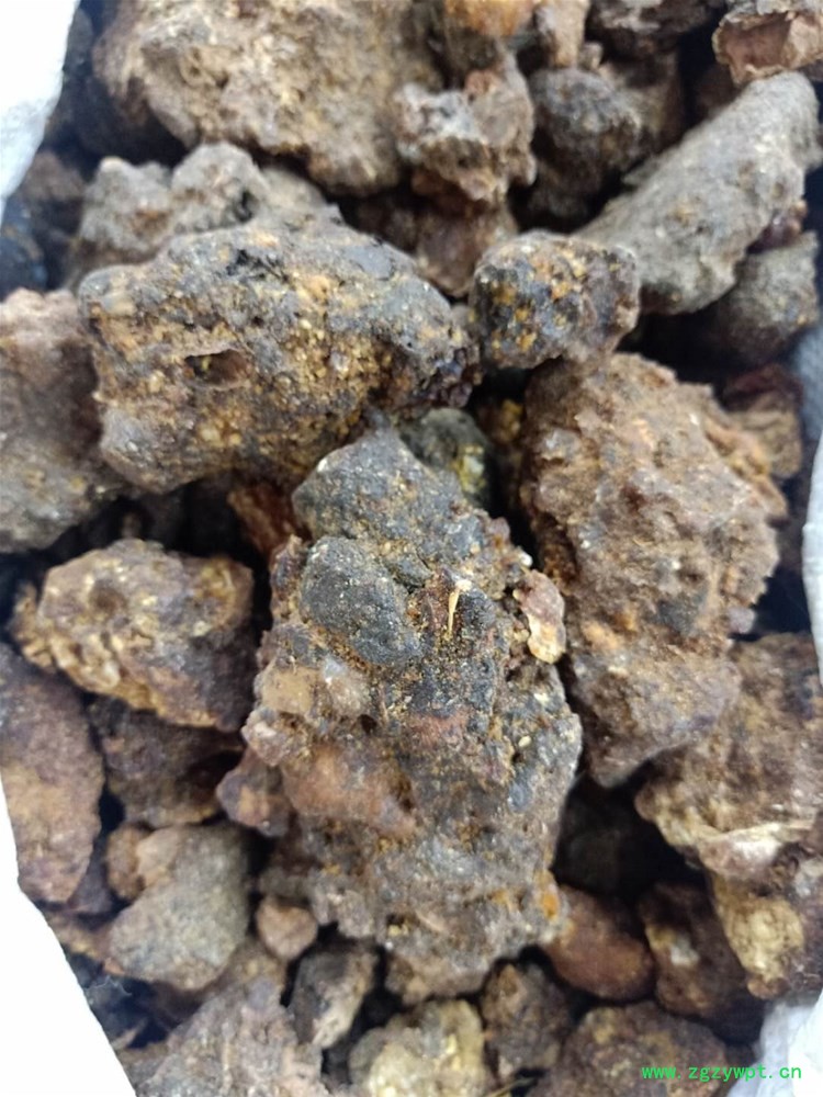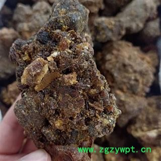[性 状]:该品呈不规则颗粒性团块,大小不一,大者直径长达6cm以上。表面黄棕色或红棕色,近半透明部分呈棕黑色,被有黄色粉尘。质坚脆,破碎面不整齐,无光泽;有特异香气,味苦而微辛。胶质没药:成不规则块状,多黏结成大小不等的团块。表面深棕色或黄棕色,不透明;质坚实或疏松。味苦而有黏性。以块大、色红棕、半透明、香气浓而持久、杂质少者为佳。