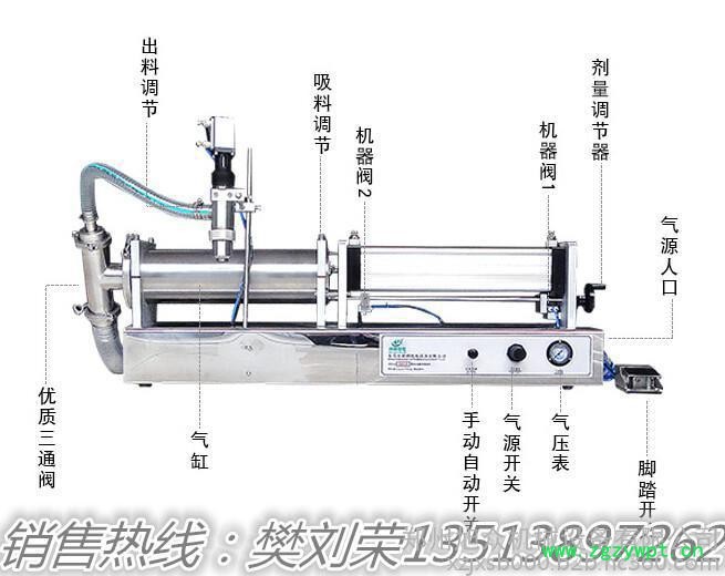 2、由于采用气动控制,并采用机械定位,所以灌装精度高,精度可以控制在±1%