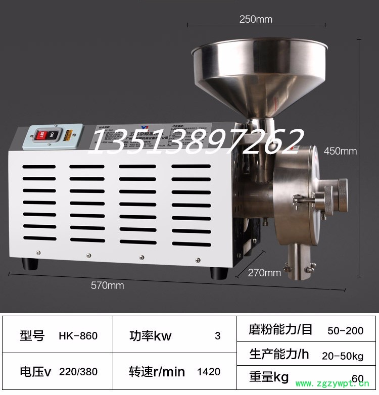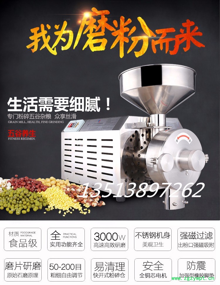 HK-860五谷杂粮磨粉机 超市商用电动3KW大功率五谷杂粮磨粉机粮食打粉机 超细研磨机 中药材粉碎机厂家全国联保欢迎您的来电咨询 13513897262