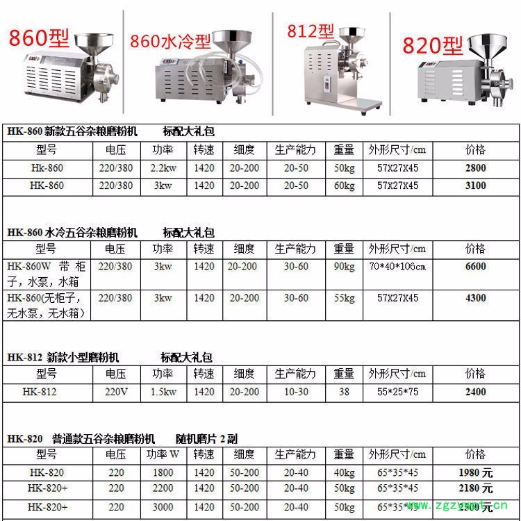 7、单独磨含油量特别高的物料如芝麻、核桃、花生等,因为这类物料的含油量特别高,只能磨成粗粉,磨细了,大量油分渗出来,会使粉变成浆状。所以磨含油量特别高的物料时,调节器不要调太紧,磨片间隙保持稍微靠近甚至要完全分离,才能磨成粗粉状(小颗粒状)。以上物料如果需磨得很细,需要配不含油或者低含油量物料,高含油量和低(无)含油量物料的比例为:1﹕4至1﹕5,而且采取磨两遍的方法,一遍粗磨,二遍细磨。