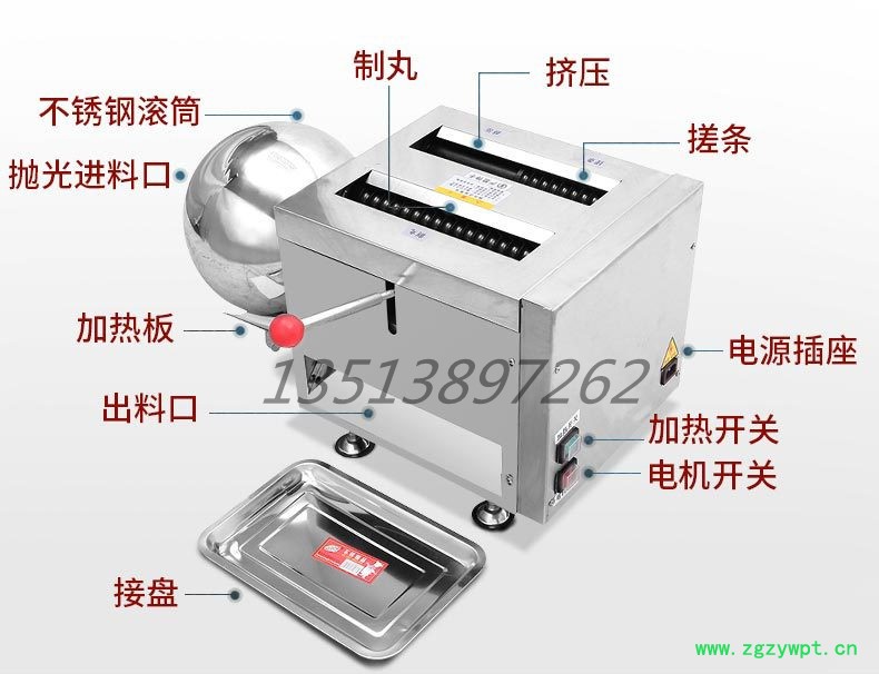 3、本机适用性强。可生产各种粘度的软、硬药丸,制丸合格率高,特别适合于小型药厂试制室,中药研究所、医院、药房及保健、食品成丸生产。