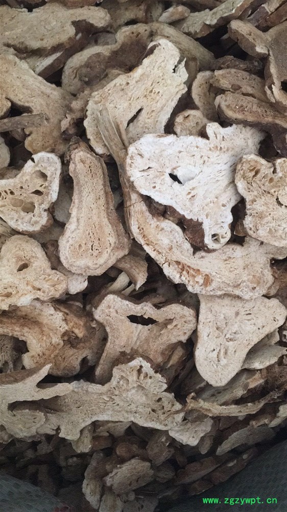 颜色性状:本品为白色片状物,表皮黄褐色,断面白色,上有蜂窝状孔。
