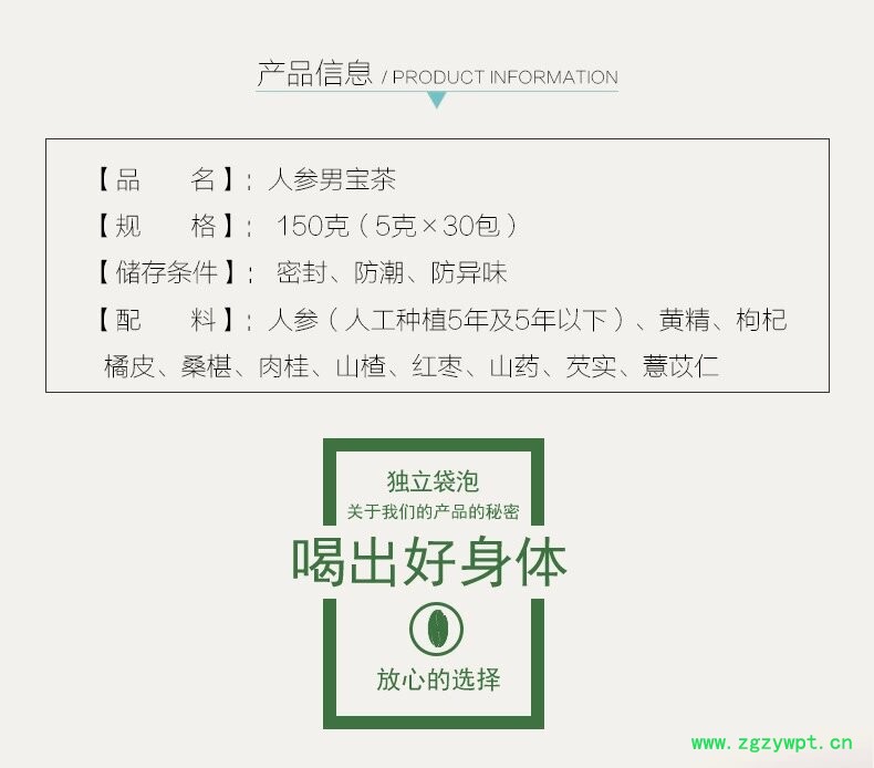 【涵鹭药业】人参男宝茶 五宝茶八宝茶男人茶滋补养生男肾茶汤养生代用袋泡茶中药茶贴牌代加工