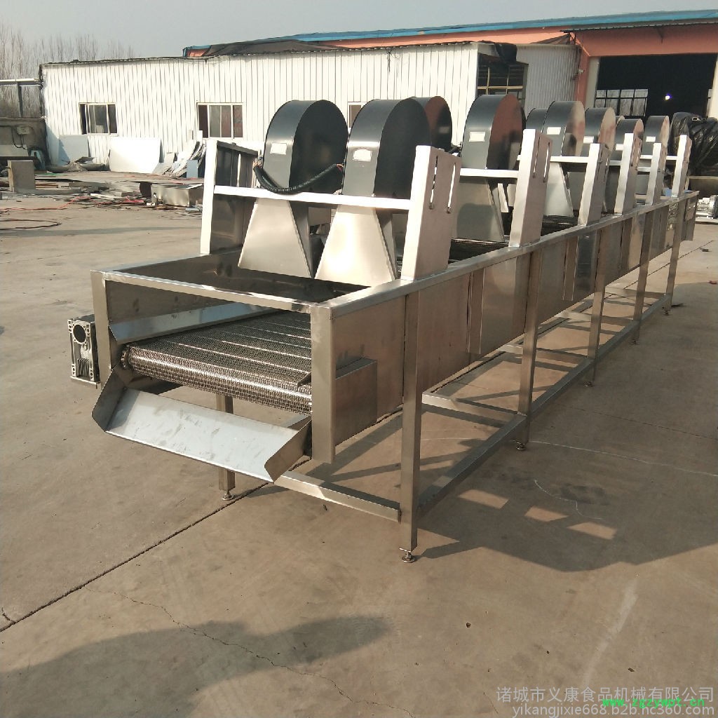 4、传动系统:主要由传动链条,传动链轮,轴承座,主动轴、从动轴、网带组成,网带都是每根从动轴带动独立传动,网带本身没有拉力,提高网带使用寿命,方便拆卸维修,网带都有毛刷护边,保护产品不易被挤压、损坏,针对产品死角太多的,需要把网带进行多次翻转,这样可以达到更好的风干效果;每次翻转链条独立传动,减轻链条拉力,延长使用寿命。