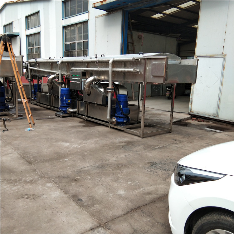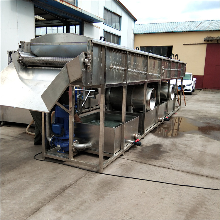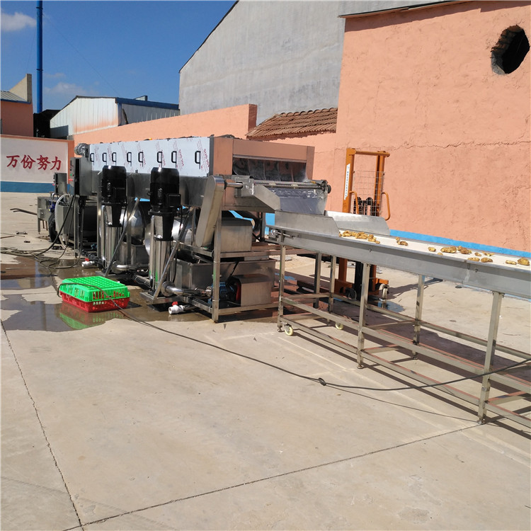 高压喷淋清洗:通过设备一侧通过管道进入循环槽内进行过滤,过滤好后的水通过水泵导入上方的高压喷头内进行扇形喷射达到二次清洗的目的,本机采用高压水流和气泡发生装置冲击被清洗物体表面,气泡在与物体接触时破裂产生的能量,会对被清洗物体表面起到一个冲击和刷洗的作用,刷洗被清洗物体表面,将被清洗物体清洗干净。 高压喷淋清洗机主要用于绿叶蔬菜的清洗,可分阶段清洗,分别去除泥沙、杂物、漂洗等,去杂洗净度高,能保持原有色泽。是大枣,蔬菜,水产生产线中的重要产品,主要用于大枣,蔬菜,水产的清洗。