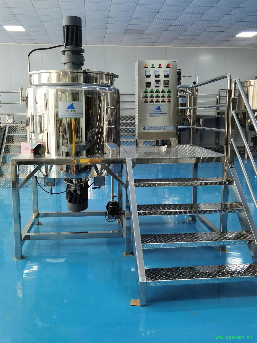 采用夹层加热,内层材质为 3mm 厚 304 不锈钢,外层材质为 3mm 厚 304 不锈钢,并且有恒温作用。可采用水加热或油加热的方式进行加热,并且具有搅拌、均质、乳化功能。生产效率相当高,30 分钟可生产 500 公斤成品,并且产品质量相当稳定,是中型生产洗发水、沐浴露、护发素、洗衣液、洗洁精、防冻液等优选设备。