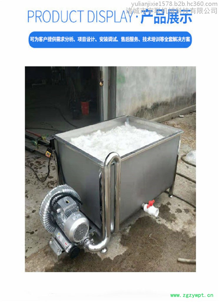 4.本机采用su304不锈钢,运行平稳、使用寿命长等特点,符合食品卫生要求。设备中有气泡发生装置,是物料成翻滚状态,去除表面农残的功效,同时可加入适量的药剂,进行消毒固色,漂浮物可以从溢流槽溢出,沉淀物从排污口排出,以达到清洗的目的。具有清洁净高、节能、节水、设备稳定可靠等特点。操作简单,维修方便、方便连线(可根据客户要求附带臭氧杀菌)。