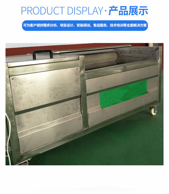 清洗后的泥沙杂质会从溢流槽溢出,沉淀物从排污口排出。该机具有外形美观和操作方便,清洗容积大、效率高、耗能小,可连续清洗,操作简单,使用寿命长等特点,毛辊材料经特殊工艺处理(采用尼龙线绳轧制而成),经久耐用,耐磨性能好。箱体采用**不锈钢材质,不锈蚀、清洁卫生。