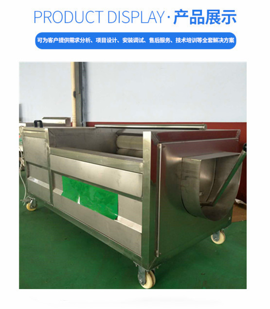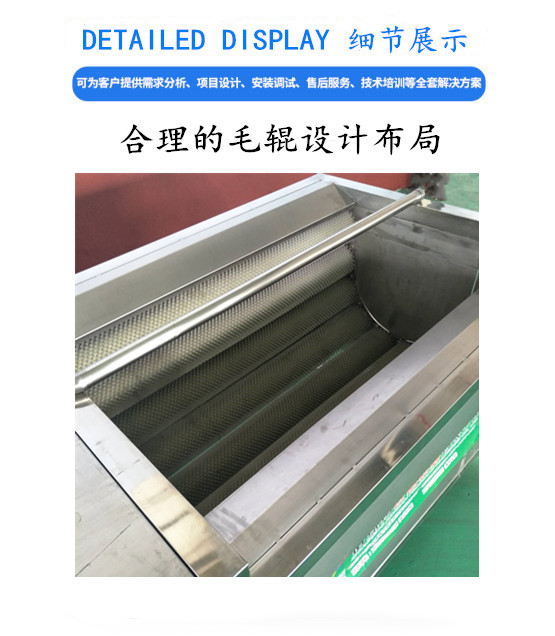 毛辊清洗机又称辊刷清洗机,应用于胡萝卜、土豆、红薯等各种根茎类蔬菜和柑橘类水果物料的分拣清洗,核桃青皮、夏威夷果青皮等坚果仁类熟果的去皮清洗。该机采用高压水喷淋和**旋转尼龙毛刷输送和清洗,清洗效果好,能彻底清洗果蔬表面的污渍。设备采用SUS304不锈钢制作而成,操作简单,结构大方美观,耐用。也可根据用户不同的物料,加工不同的提升结构、可根据用户要求定制。