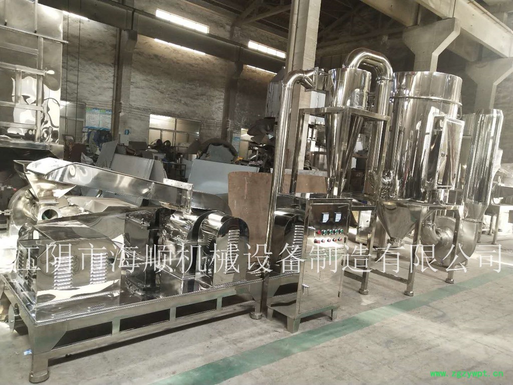 无锡厂家生产田七粉碎机,中草药无尘粉碎机根据我国国情设计研制的,该机具有技术性能稳定、噪音低、耗电省、效率高、外观美、使用灵活、占地面积小、适用范围广等特点。本机对于粉碎干燥非纤维性物料及矿物质;具有较理想的效果。与国内机型相比,制品湿度低粒度均匀,特别适用与食糖、塑料粉末、中药材等热敏性材料的粉碎。本机组有主机、辅机、集管道、电控装置为一组。辅机内有旋风除尘器与滤袋除尘器合二为一,也可按用户的要求分开制造使用。