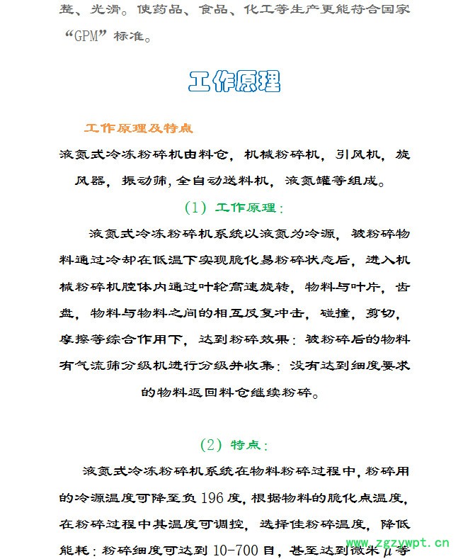 (2)粉碎机功率:45KW (5)工作温度:0度到负196度(可调控)